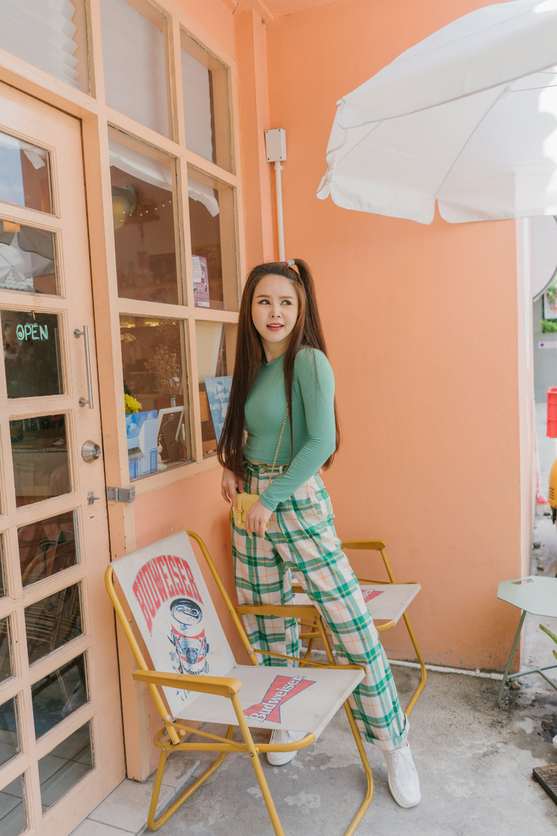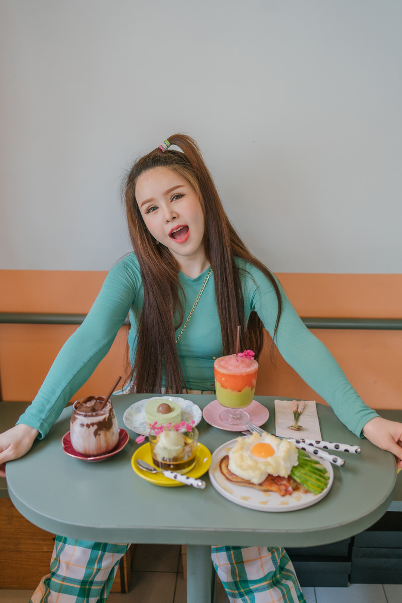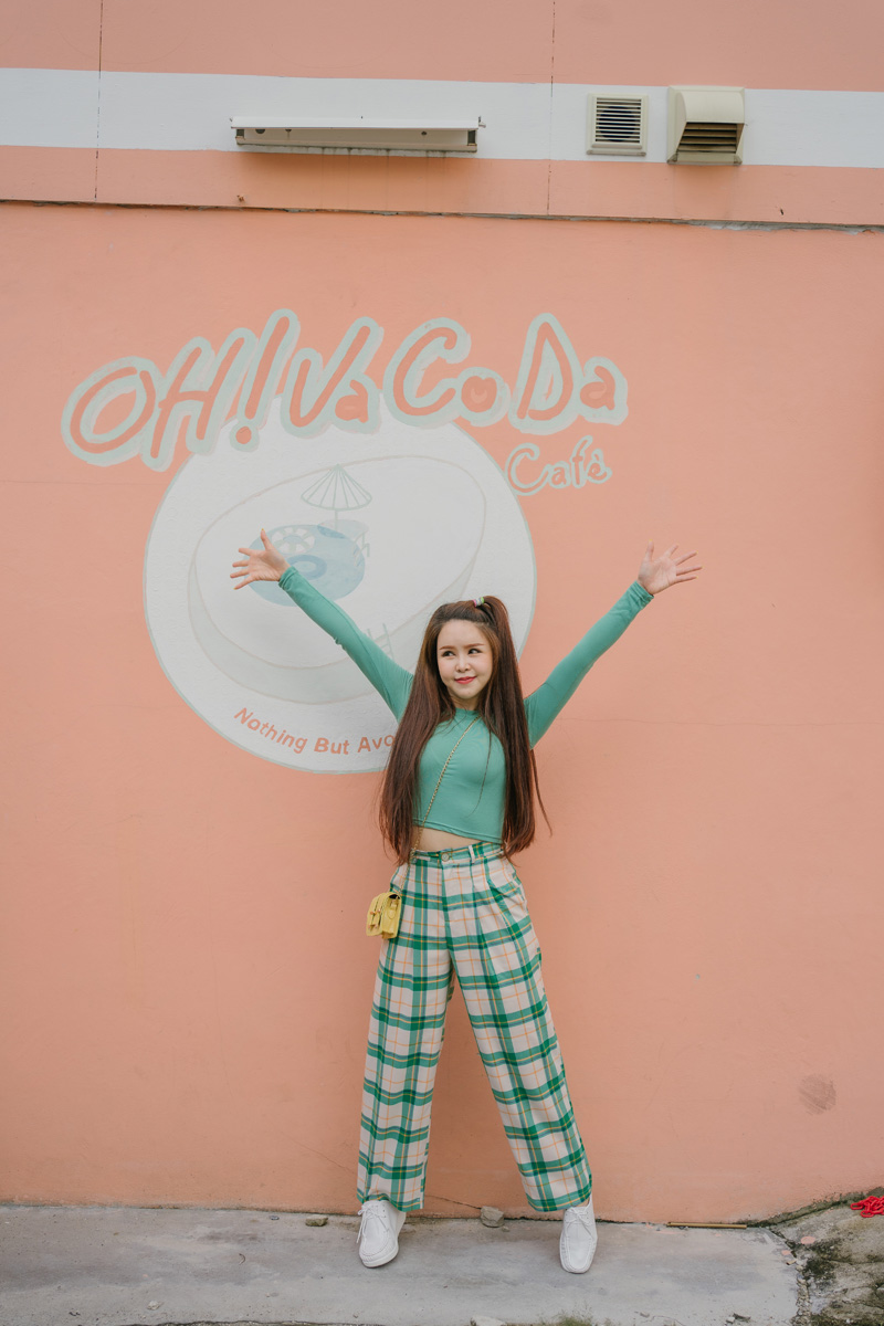 วันนี้น้องเค้กพามากินอะโวคาโด้กันค่า เมนูในร้านล้วนมีอะโวคาโด้ผสม ดีต่อสุขภาพมากค่ะ น้องเลยจัดชุดสีเขียว ถ่ายกับร้านสีออกส้มพาสเทล แมทช์กันดีค่า