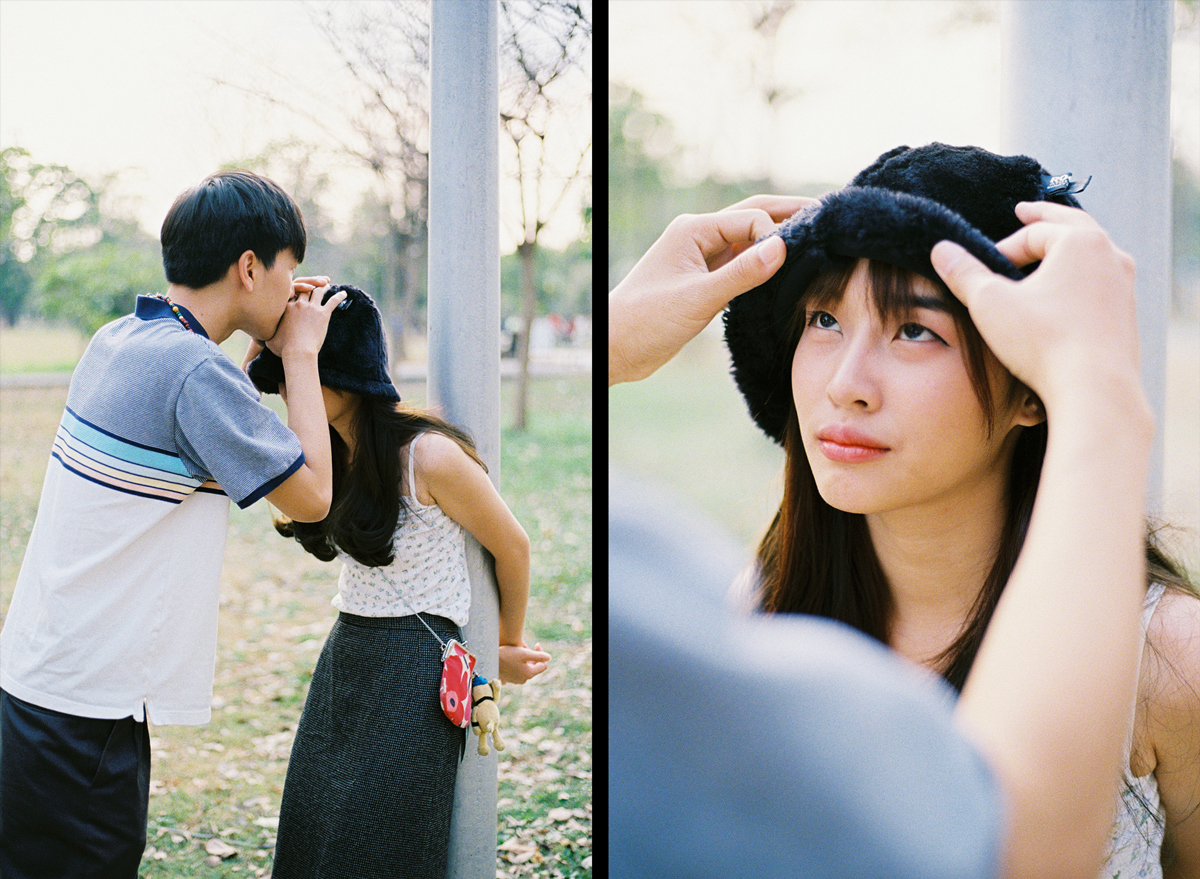 เมื่อฉันพกกล้องไปสองตัว มีกล้องฟิล์ม และกล้องดิจิตอลอย่างละตัว ถ่ายคู่รักที่น่ารักมากคู่นึง ในขณะที่คู่รักของเรากำลังมีมู๊ดที่ควรเก็บภาพ จังหวะนั้นเราเลยต้องกดถ่ายทันทีด้วยกล้องที่อยู่ในมือ มาดูกันว่าภาพที่ถ่ายได้จากกล้องแต่ละตัวเป็นยังไงบ้างค่ะ