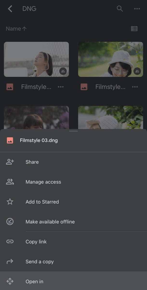 1. นำพรีเซต DNG ไปฝากไว้ใน Cloud Drive ที่ถนัด กรณีนี้ใช้ Google Drive จากนั้นเปิดโฟลเดอร์ที่เก็บพรีเซต DNG แล้วกด “…” ที่พรีเซตที่ต้องการ