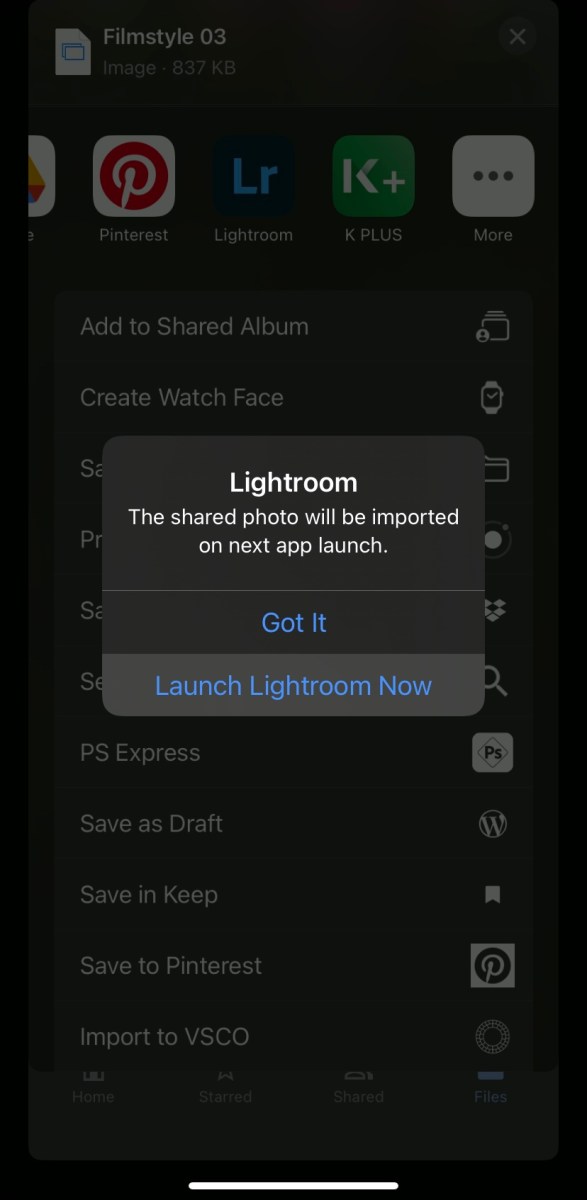 3. เลือกแอป Lightroom