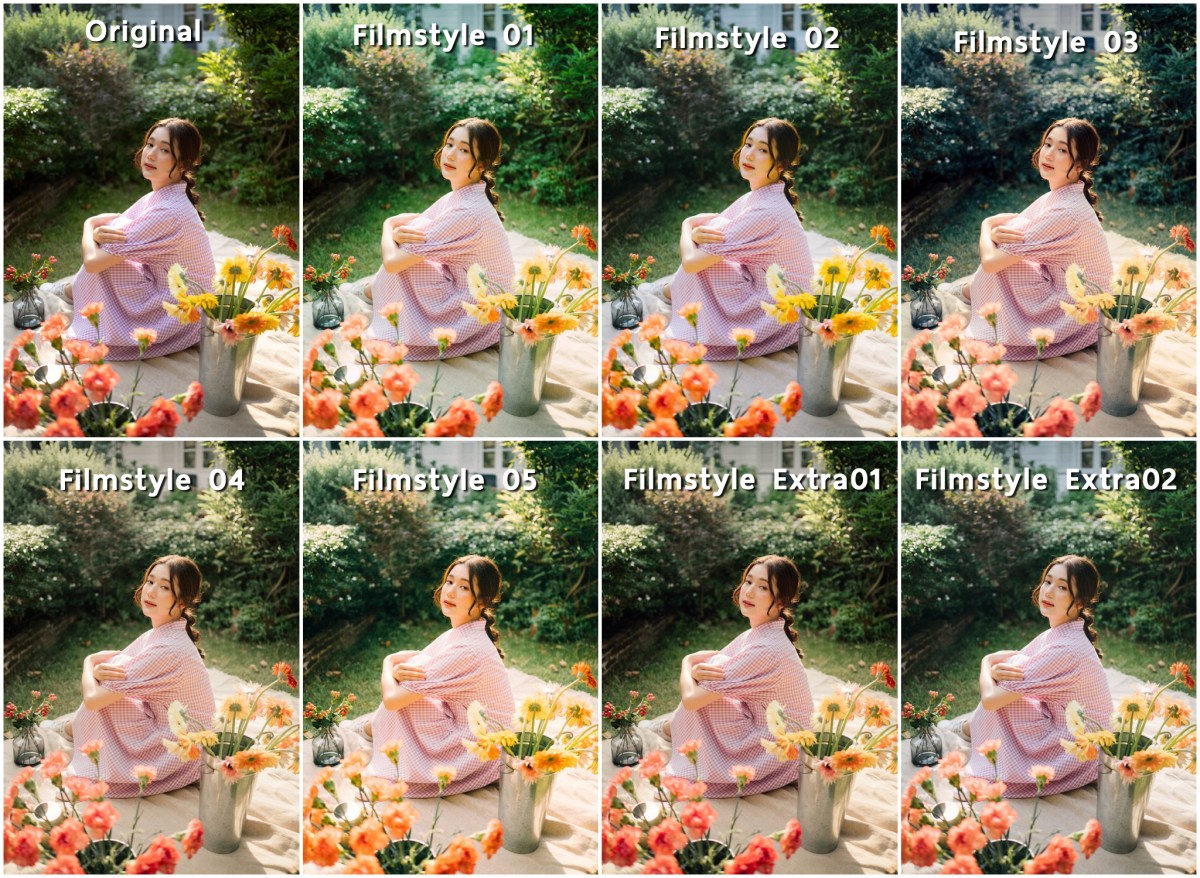 แพ็คเกจนี้มีทั้งหมด 7 Preset มีชื่อว่า Filmstyle 01 – 05 และ Extra 01-02